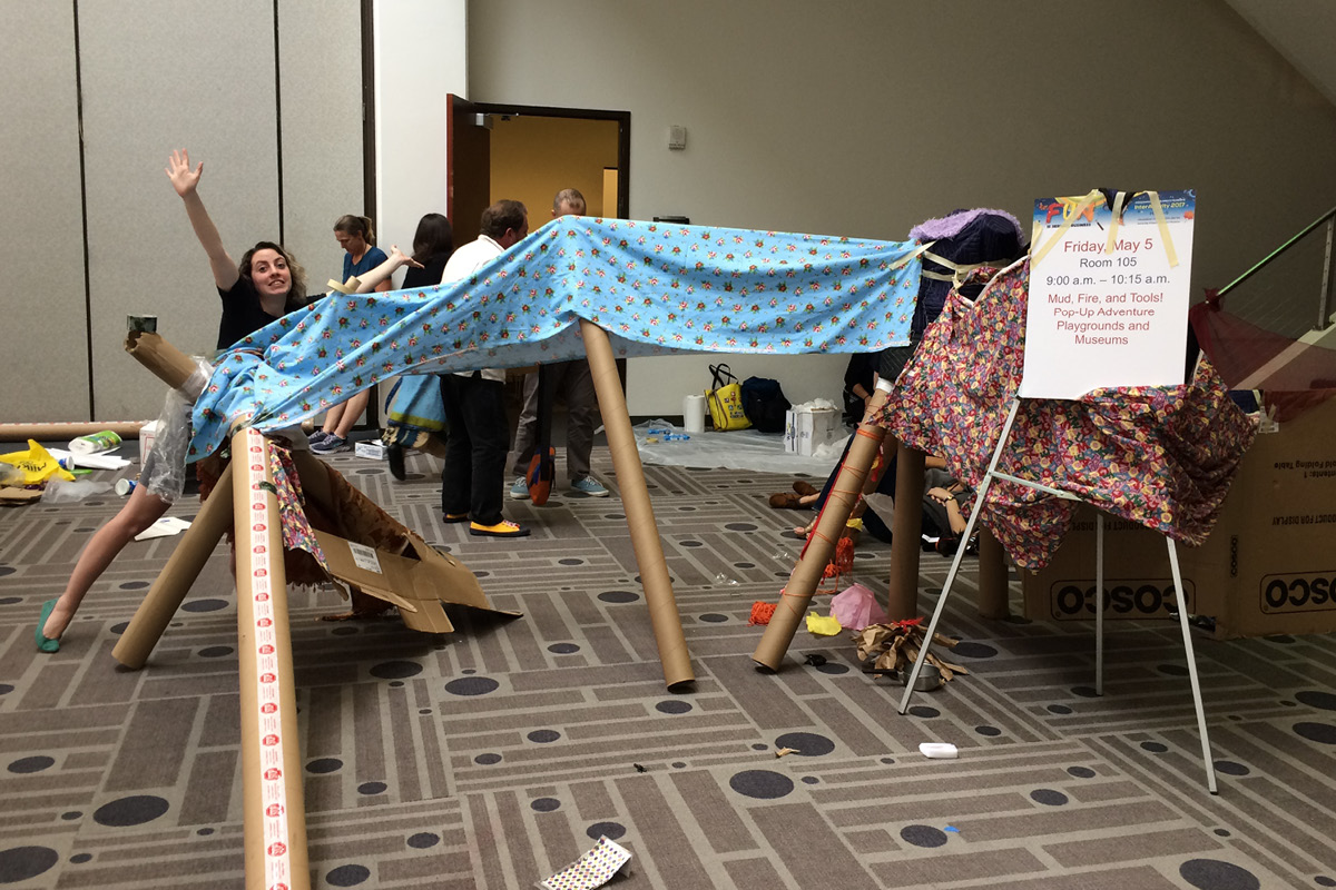 Portland Free Play presented along with folks from the Portland Children’s Museum about our experiences running pop-up adventure play events, and how they can fit in the kids’ museum context. We talked about the importance of nature play, access to materials kids can build with, and why kids need time and space for unstructured play unfettered by adult agendas.
